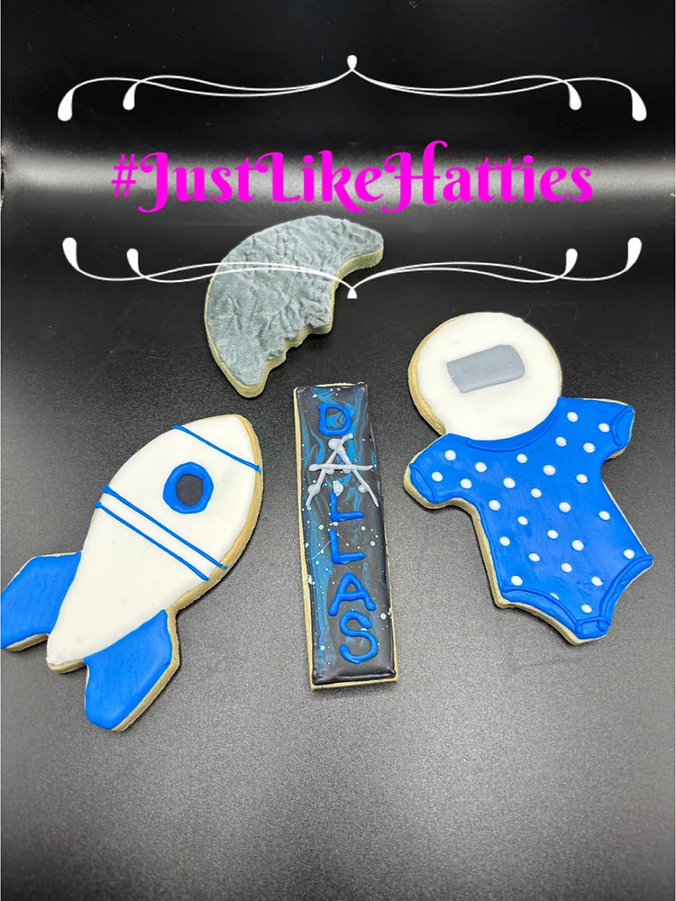 These were for a baby shower with a space theme. They also featured a 3D rocket ship as the cake topper. #JustLikeHatties